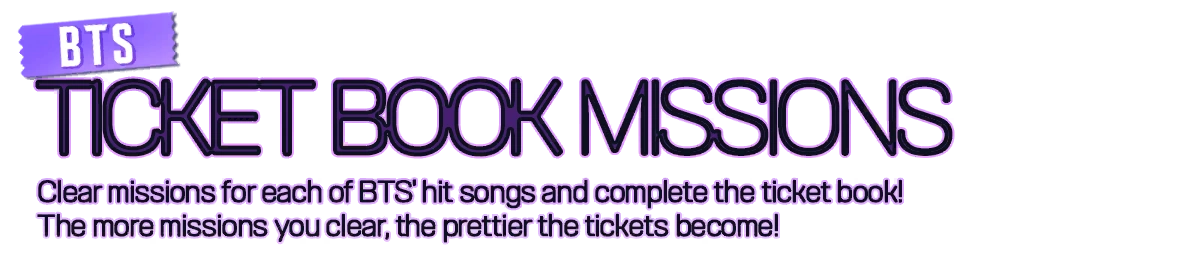 BTS Ticket Book Missions was a limited-time event that ran for the duration of the BTS crossover. It granted rewards based on objectives accomplished in the BTS Concert.