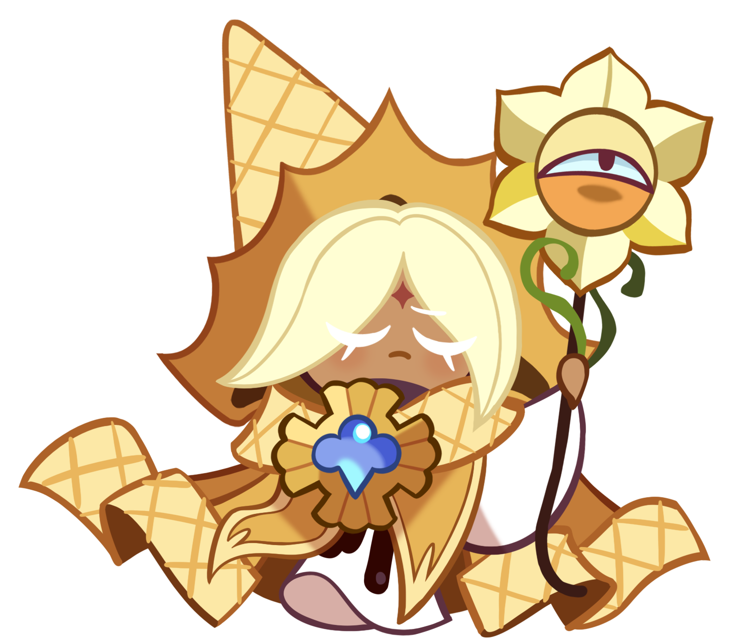 You see, I just HAD to know! How is it that BASIC Cookies like yourselves, were able to defeat MY wondrously engineered Wafflebots? Wafflebots made by none other than ME, Strawberry Crepe Cookie! |
