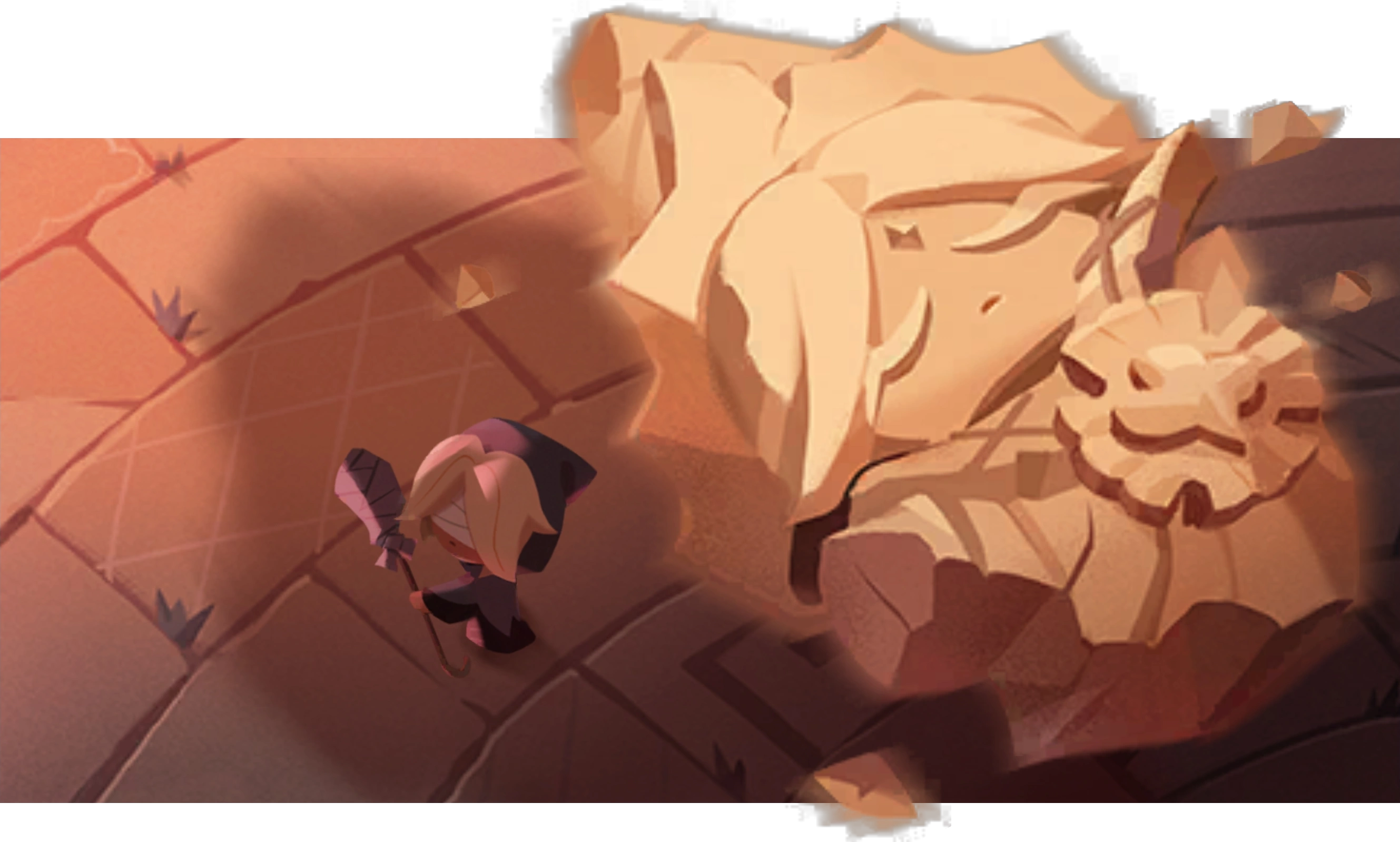 The statue's crumbled down! Healer Cookie, are you alright? |