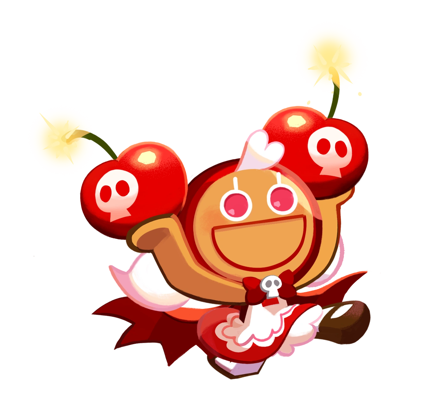 Behind her endearing smile and adorable looks, Cherry Cookie hides a destructive nature. A real troublemaker decorated with bright red cherry syrup, she enjoys pulling destructive pranks. She especially enjoys throwing her Cherry Bombs, which explode like fireworks. Believe it or not, the sweet, invigorating smell of cherry black powder in the air can blow any stress away!
