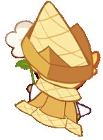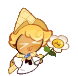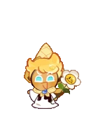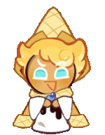 Who's this Cookie wrapped up in a waffle cape? Oh, it's none other than Custard Cookie III, who's dressed up in his royal Vanillian robes for the Grand Ball! Just look at him: he's on his toes for his dancing partner! No wonder why there's a whole line of Cookies fawning over him!