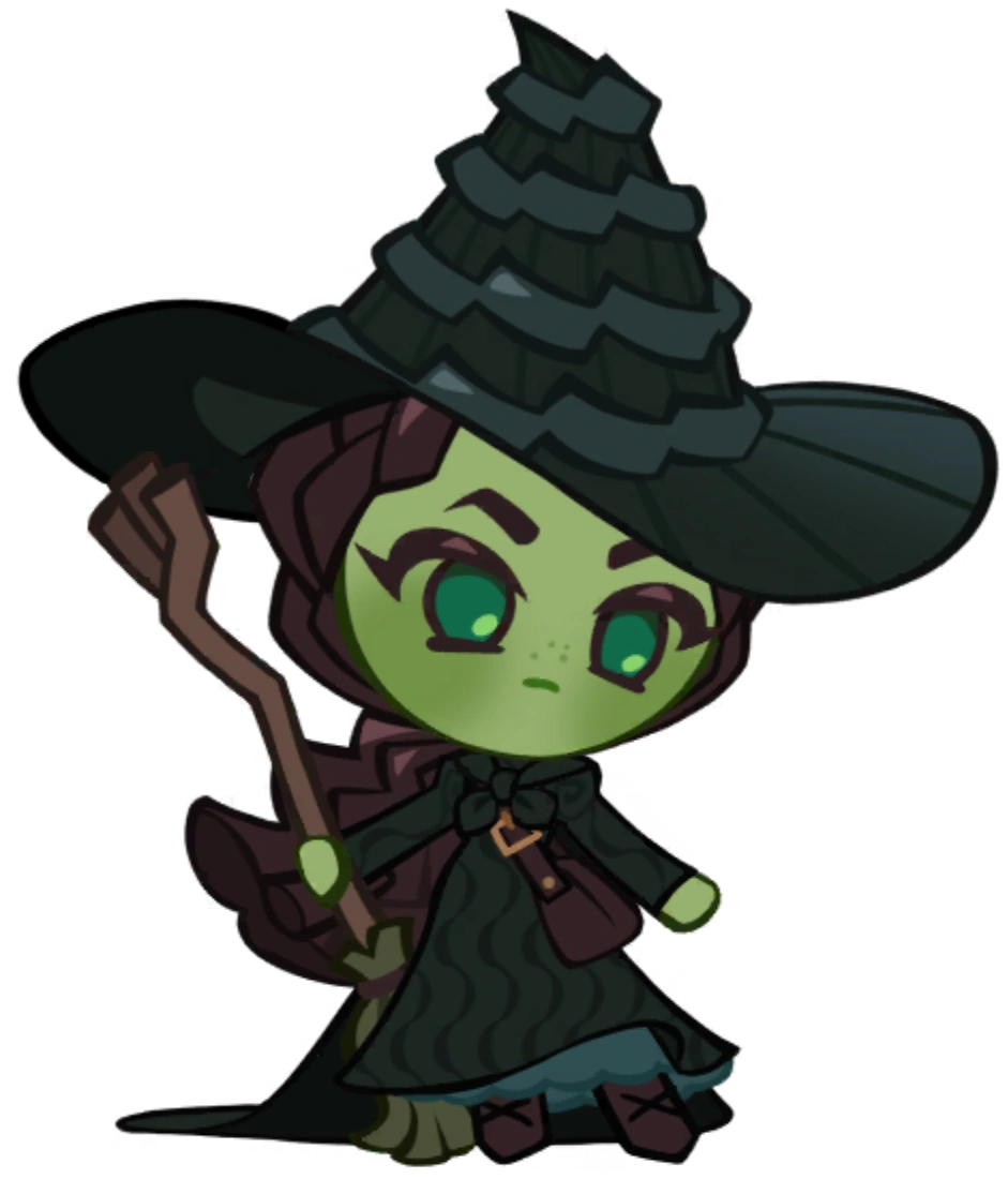 Elphaba Cookie was added to the game as part of the Wicked x Cookie Run: Kingdom collaboration for the release of Wicked: For Good. She does not appear in the standard Cookie Gacha and could only be obtained via the Wicked Gacha.