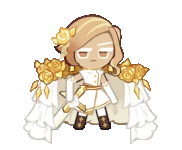 Gold-embroidered attire, a lace-trimmed cape, unwavering eyes, and perfect posture—today, this Paladin smooths out her uniform with a delicate touch. With scrupulous and cold determination, Financier Cookie strides forward, ready to swear a sacred oath to the Divines. Dressed in gleaming gold, her commitment to upholding the Paladin's honor shines even brighter.
