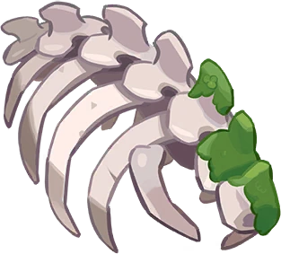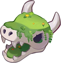 These bones were once the head of a fearsome dragon, but time has taken its course and it now has become a habitat for new life in the meadows. Young Jelly Wormys visit the nearby pastures for picnics, Blueberry Birds make nests out of these ancient remnants, and life goes on. |