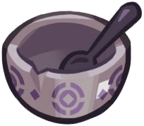 Tableware used by warriors guarding the borders of the Dark Cacao Kingdom. Sworn to remain vigilant at all times, the warriors may have only one meal of humble cacao nibs and choco ball fruits a day. |