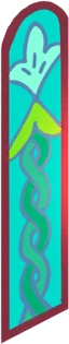 Emerald stained glass of the Solarium of Unity. White Lily Cookie's insignia creates a serene and wise impression. | |