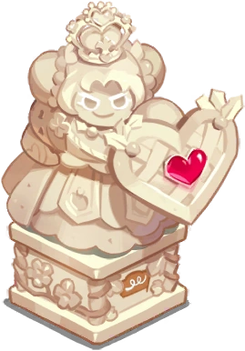 The sugar statue of Hollyberry Cookie a heroic Cookie who was always there for her friends. The ever-bright red jewel on the shield is glistening with a fire of courage and passion. Relic Effect: Activates Blast Mode in Cookie Alliance battles.