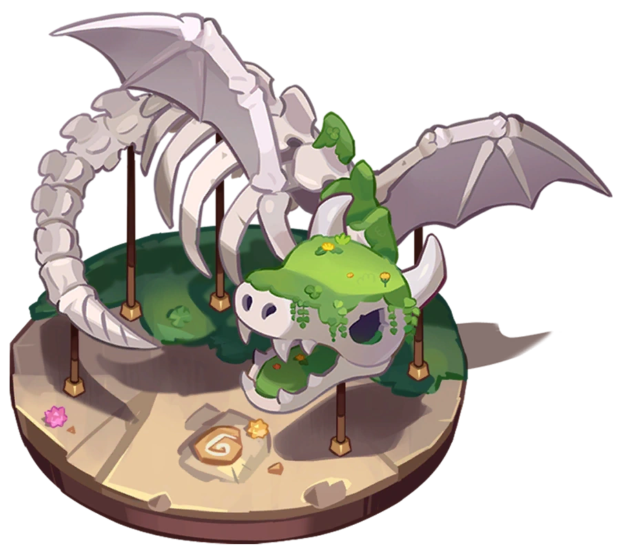 Dragon Skeleton The dragon bones that have now forgotten everything and slept peacefully. From the huge skeleton left here, you can imagine the appearance of a majestic dragon and powerful magical power. Visitors—please let the creature rest in peace. How to unlock: Obtain all relics in this gallery.