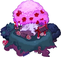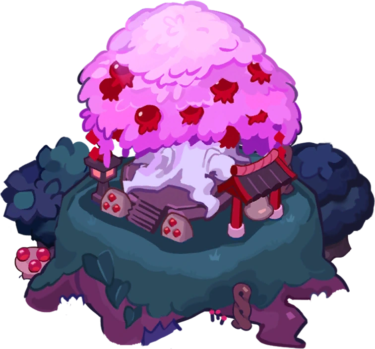 The Sacred Pomegranate Branch appears to be a clipping of the Pomegranate Village's Sacred Pomegranate Tree in Tainted Forest, whose branches the Priestess Cookies use as their tamagushi-gohei implements.
