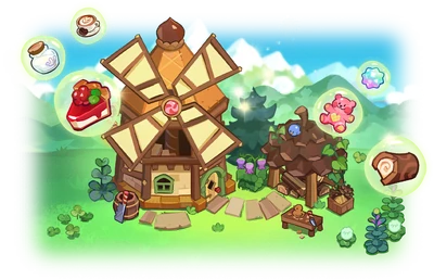 The Windmill Garden provides three sections for Raw Material Buildings, Craft Buildings, and Cookie Houses. Three slots are initially unlocked for both building sections, with additional slots being unlockable with Coins and Aurora Rarities. All Cookie House slots are immediately available. All buildings are stored as is; they'll retain their rotation and ground setting. Cookie Houses cannot be turned into mansions and vice versa when stored inside the Garden, so it has to be done outside of it.